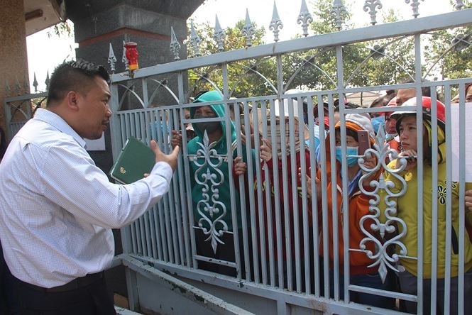 "Chúng tôi đến đúng giờ nhưng bảo vệ nói lãnh đạo chưa đến, công ty chưa hoạt động lại", một công nhân cho biết.