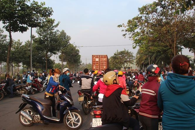Sáng 26/2, hơn 2.000 công nhân công ty KL Texwell Vina (vốn Hàn Quốc, sản xuất hàng may mặc, đóng tại KCN Bàu Xéo, huyện Trảng Bom, Đồng Nai) đi làm ngày đầu tiên sau kỳ nghỉ Tết Nguyên Đán.