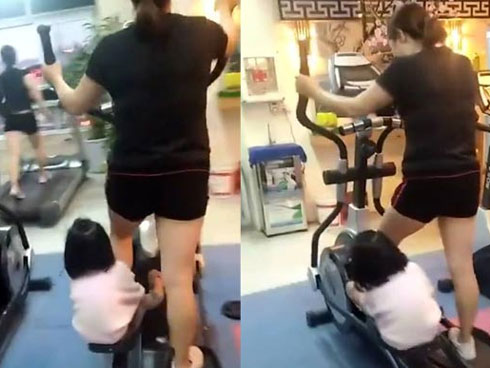 Cô bé quyết "đeo bám" mẹ ngay cả khi đang tập thể dục khiến người xem không nhịn được cười. Xem ra, người mẹ này sẽ đạt được hiệu quả tập thể dục tốt nhất, trong thời gian nhanh nhất vì mang theo con.